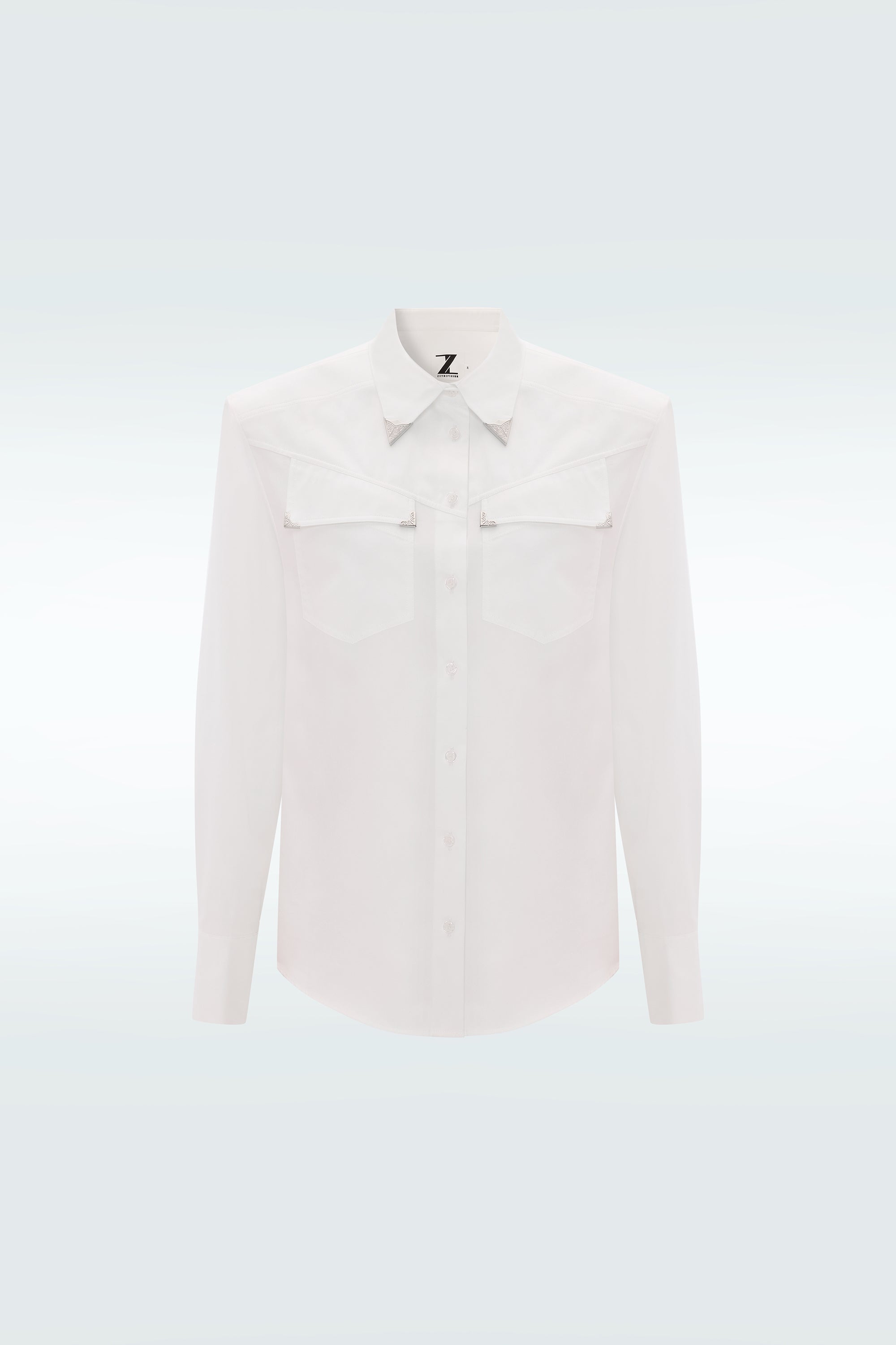White Collar shirt power shoulder shirt with cowboy inspired metal details