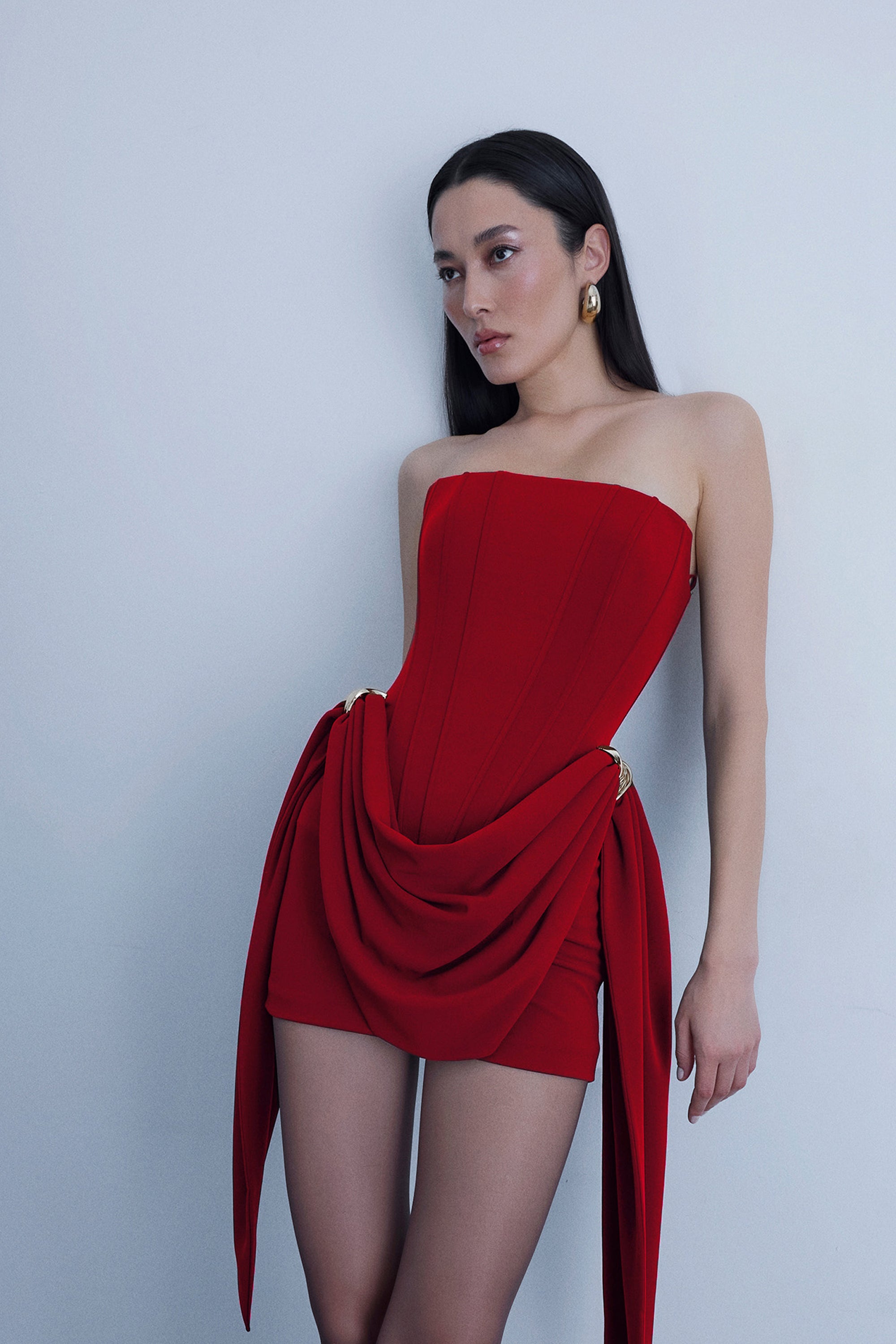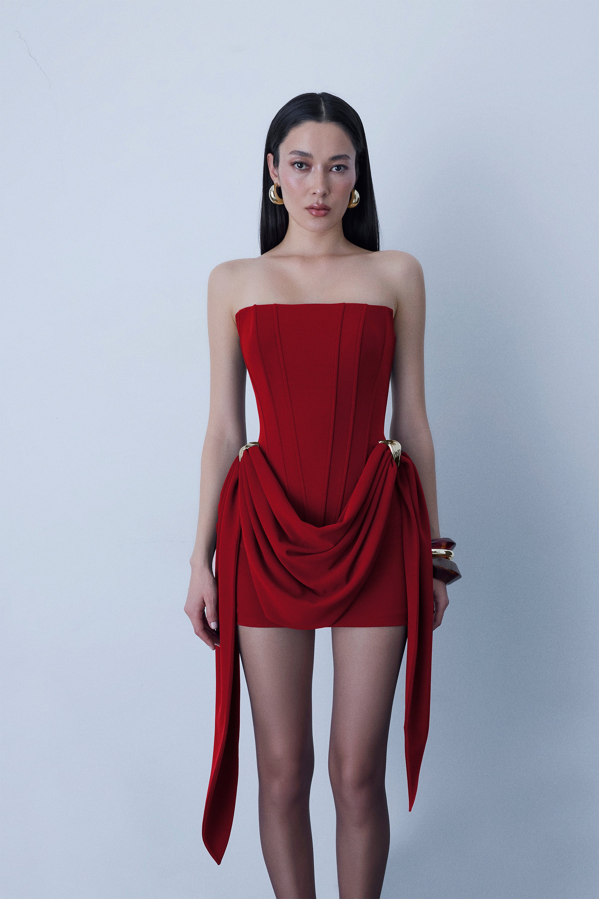 Mini strapless dress with metal accessories
