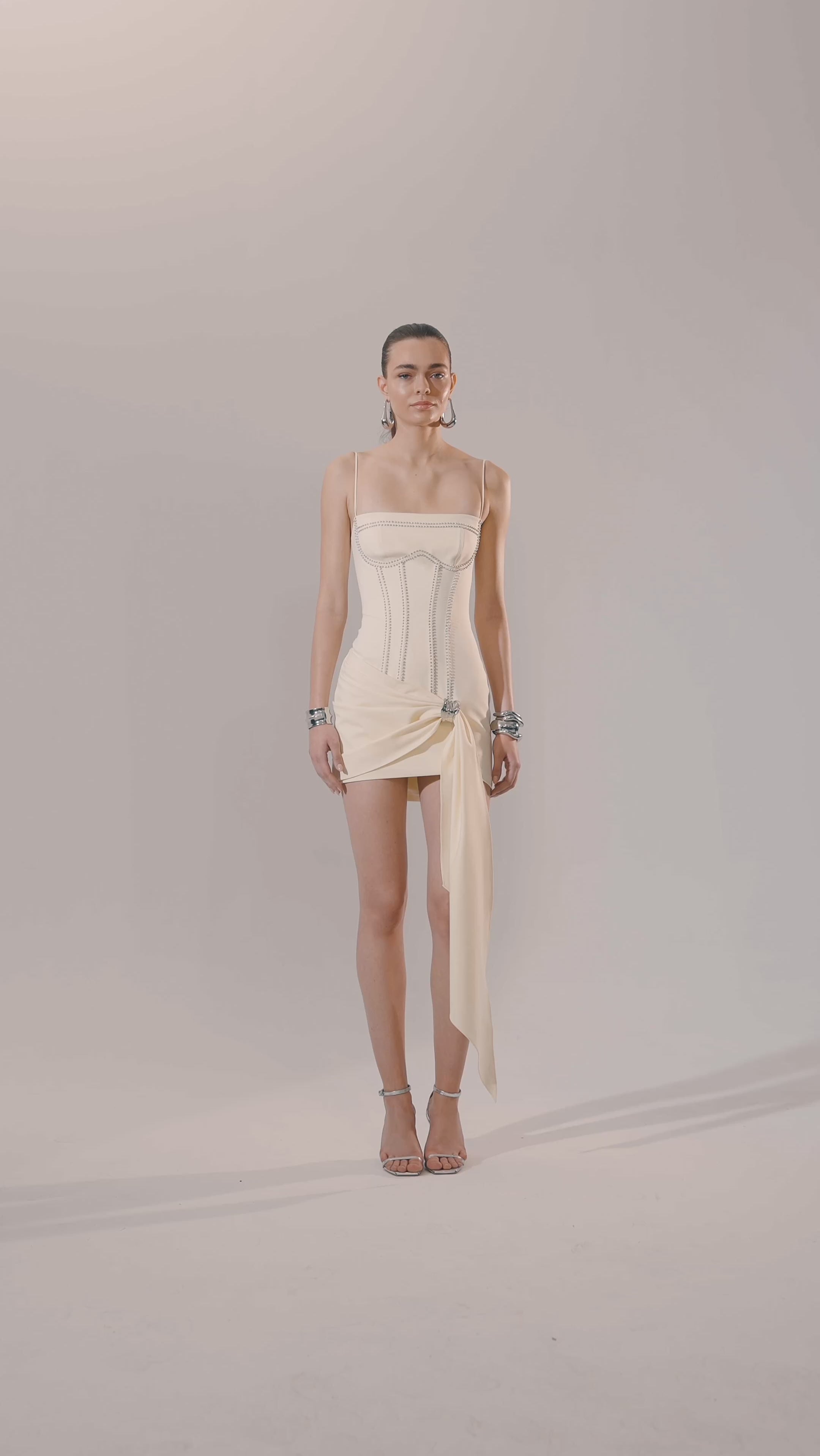 Corset detailed mini dress with hand embellished metallic beads